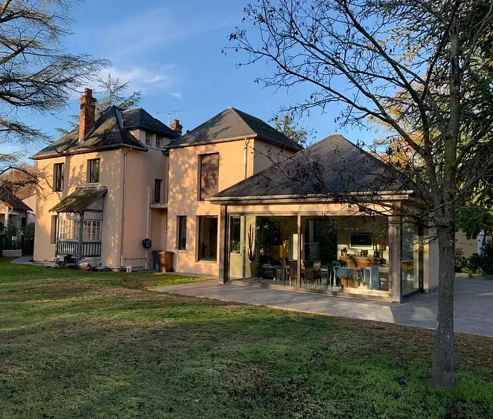 Paris jardin merveilleuse maison de 230 m² habitables + sous sol et garage pour 6 voitures composée sur 3 niveaux de 10 pièces dont 7 chambres cuisine équipée terrain paysager de 1400 m² face au parc départemental 'du port aux cerises ' -