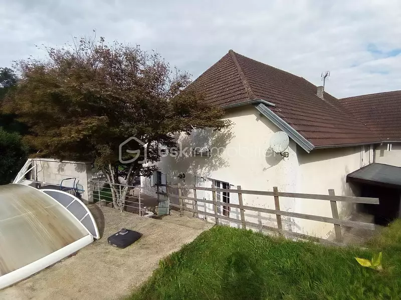 La maison possède un grand garage d'environ 50m2+ un grand espace atelier + espace chaufferie et cellier, une piscine avec dome, dans un environnement au calme et verdoyant, toiture bon état, charpente traditionnelle traitée, isolation sous toiture, assainissement collectif, honoraires inclus charge vendeur.