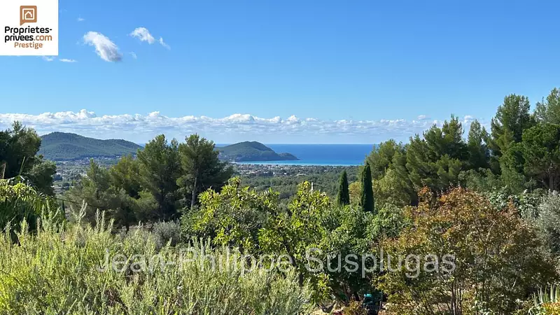 83740 La Cadière d'Azur - Exceptionnelle villa vue dominante mer, environnement calme au coeur de la pinède. Au 07 60 01 14 86, je vous propose une villa de plain pied, proche des sublimes plages des Lecques et du golf dolce Frégate, orientée sud. Maison de caractère bâtie en matériaux traditionnels d'une superficie de près de 230 m² composée de pièces de vie (salon plafond cathédrale avec cheminée à insert, salle à manger, cuisine aménagée et équipée avec buanderie) de plus de 100 m2, 1 bureau, 4 chambres, dont 2 suites, le tout sur un terrain de 5000 m2 végétalisé avec de nombreuses essences méditerranéennes, agrémenté d'une piscine chauffée et d'un bassin à carpes, de terrasses très agréables face à la mer, garage double. Chauffage au sol, climatisation dans les pièces principales, chauffe-eau solaire.