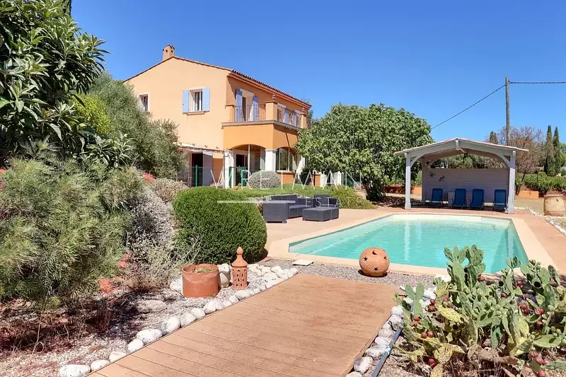 Cette villa élégante, nichée au cœur des vignes dans un cadre de calme absolu, allie confort contemporain et charme provençal. Offrant 230 m² de surface habitable et six chambres, elle constitue un lieu idéal aussi bien pour une vie de famille que pour recevoir. Inondée de lumière naturelle, chaque pièce ouvre sur des vues apaisantes du paysage environnant.