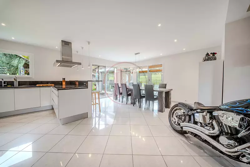 Située dans un environnement calme et privilégié, cette maison contemporaine construite en 2006 offre 230 m2 habitables sur un terrain entièrement clôturé de 1 126 m2.sans aucun vis-à-vis côté jardin, et un emplacement idéal à seulement 5 minutes du lac.
