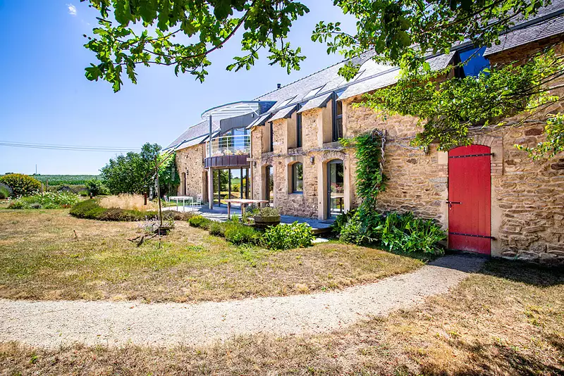 Riec-sur-Belon - Nichée au coeur d'un parc paysager de 5 810 m², cette ancienne longère entièrement restaurée en 2010 avec des matériaux de qualité, allie charme et modernité. Sublimée par la noblesse du bois et de la pierre, ses 230 m² habitables et ses volumes généreux, vous offriront un cadre de vie tranquille. Dès l'entrée, vous serez séduit par un espace de vie de 75 m² composé d'un salon-séjour cathédrale avec poêle à bois baigné de lumière, d'une salle à manger et d'une cuisine semi-ouverte toute équipée. Une chambre ou un salon avec salle d'eau privative, idéale pour recevoir ou vivre de plain-pied, vient compléter ce rez-de-chaussée. L'étage se décompose en 2 parties: d'un côté la mezzanine aménagée propose un bel espace bibliothèque et donne accès à une suite parentale avec dressing, salle d'eau et WC, buanderie et un atelier (possibilité chambre). De l'autre, un espace nuit indépendant, offrant deux chambres supplémentaires et une salle d'eau partagée, parfait pour les invités ou une activité de chambres d'hôtes. Une cave à vin, une arrière-cuisine et un atelier viennent compléter ce bien. Un véritable havre de paix, à proximité immédiate de la rivière de l'Aven et ses sentiers côtiers, du Port de Rosbras et à 5kms des commerces de Riec-sur-Bélon. Rare ! Une opportunité à saisir rapidement ! (4.00 % honoraires TTC à la charge de l'acquéreur.)