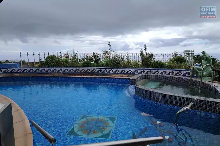 Villa F6/7 de 230 m2 habitable plus 100 m2 de terrasse entre le rez-de-chaussée et l'étage avec une vue panoramique sur l'océan le tout sur un terrain de 1.235 m2.Elle est composée de 4 grandes chambres de plus de 20 m2 donnant chacune sur la terrasse dont 2 sont au rez-de-chaussée et 2 à l'étage chacune possédant de grands rangements, une salle d'eau et WC et, pour une, une salle de bain avec douche et WC, d'un salon-salle à manger de 70 m2, d'une cuisine équipée d 12 m2 et d'une buanderie de 12 m2 le tout aménagé avec des matériaux de grandes qualités.La piscine est au sel dans laquelle est intégré un jacuzzi.Cette villa est un bien rare de part ses beaux volumes, de son emplacement calme à proximité des commerces, des professionnels de santé, de la mairie, de la gendarmerie, de la piscine communale, de,l'école primaire et du collège.Elle possède un garage une place avec la possibilité de garer au minimum 3 voitures dans la cour et un potager de 300 m2.Contacter agent commercial Dimitri MATHIS au 0692.39.65.83 - Annonce: