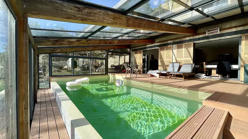 Pour des moments de détente ultimes, découvrez la piscine intérieure, un havre de paix où le calme règne en maître. De plus, le garage double et la grande cave offrent des espaces pratiques pour faciliter le rangement au quotidien.