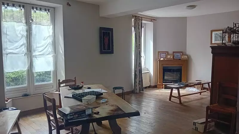Dans Uzerche, proche de la gare, maison en pierre à finir de restaurer, élevée sur sous-sol, offrant de beaux volumes. Au 1er étage , pièce principale d'environ 40 m² avec cuisine ouverte, trois chambres et salle de bain. au 2ème étage, 8 pièces. Double vitrage, chauffage électrique. Le tout sur 500 m² de terrain.