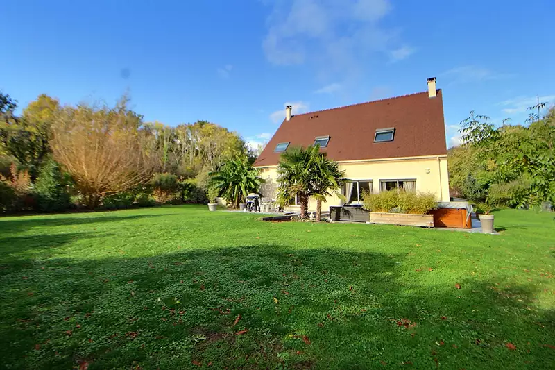 Magnifique maison familiale avec vue dégagée sur les hauteurs de Vaux-sur-Seine. Effet waouh garanti ! Située en impasse dans un quartier paisible et recherché de Vaux-sur-Seine, cette superbe maison d'une surface de 231 m² , édifiée sur un terrain paysager de 1 500 m², allie élégance, confort et prestations haut de gamme. Son état irréprochable et ses matériaux de qualité en font un bien rare sur le secteur. Dès l'entrée, vous serez séduits par le grand séjour lumineux ouvert sur la terrasse, agrémenté d'un poêle à bois et d'un chauffage au sol pour un confort optimal. La cuisine contemporaine ouverte, entièrement équipée, invite à la convivialité et aux moments en famille. La vie de plain-pied est assurée avec une belle chambre, une salle d'eau moderne et des toilettes séparées. A l'étage, l'espace nuit se compose de quatre chambres, dont une avec dressing, ainsi qu'une spacieuse salle de bains avec douche et WC séparés. Le sous-sol total entièrement aménagé offre de multiples possibilités : un grand garage, un espace buanderie et une superbe salle de cinéma privée entièrement équipée. L'extérieur permet le stationnement de plus de 5 véhicules. Vous profiterez d'un cadre verdoyant, d'une vue dégagée et du calme absolu tout en restant proche des commodités et des axes principaux. N'hésitez pas à nous contacter pour la visiter. Pour cela, appelez l'AGENCE PRINCIPALE au 01 39 70 77 77.