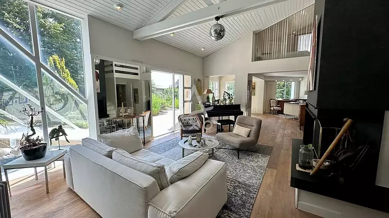 A 11 kms sud de Clisson, Maison d'architecte à proximité immédiate des services et des commerces et à l'abri des regards. Hall d'entrée, Pièce de vie comprenant un séjour, cuisine équipée et salon-cheminée de 75 m2, bureau ouvert, une chambre avec salle d'eau, Une suite parentale avec dressing de 33 m2 - salle d'eau- toilettes (13.86 m2). Sauna, piscine intérieure avec plage de 46 m2. A l'étage : mezzanine-salon, toilettes, une chambre-salle de bains 18 m2. Garage double, cave, une pièce-rangement, chaufferie. Jardin clos et arboré avec bassin. Plus un autre garage Prestations et matériaux de qualité. Contactez votre Agent AXO - L'immobilier Actif au 06 80 17 03 03, Franck GIRAUD (EI) Agent Commercial RSAC 352.276.786 La Roche / Yon. Plus d'informations sur (réf. 85002119095). Honoraires : 16 000 € TTC (2,86 %) inclus charge acquéreur (560 000 € hors honoraires). Les informations sur les risques auxquels ce bien est exposé sont disponibles sur le site Géorisques : https://www.georisques.gouv.fr/
