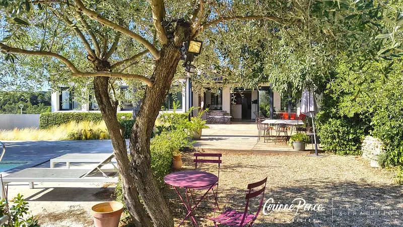 C'est dans un cadre enchanteur que se cache ce petit bijoux avec une vue dégagée et sans aucun vis à vis. L'agence Corinne Ponce immobilier vous présente cette sublime villa d'environ 187 m2 de type 6 avec son mazet d'environ 45 m2 de type 2 entièrement rénové sur une très belle parcelle arborée de 2000 m2 avec piscine. Très agréable à vivre la villa et largement orientée sur les extérieurs et sur sa terrasse avec pergola bioclimatique. Cette maison très lumineuse avec de belles ouvertures vous offre un séjour cocooning avec son poêle à pellet, une cuisine ouverte toute équipée et sa salle à manger. Une suite parentale avec sa salle de bain, trois grandes chambres, une salle d'eau, un bureau et un dressing. Nous sommes aussi sous le charme du mazet totalement indépendante qui se compose d'une pièce de vie avec cuisine ouverte, une chambre et une salle d'eau. Le jardin offre différents espaces de détentes avec ses terrasses zen et sa piscine avec une vue sur la nature. Paradisiaque, coup de coeur assuré !