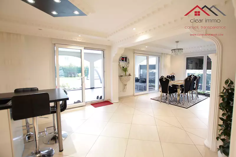 Belle maison familiale d’une surface utilisable de 300m2, de 232m2 habitables avec 50m2 de garages, 2 terrasses de 43 m2 chacune sur 7,74 ares de terrain avec une piscine extérieur chauffée sans vis-à-vis.
