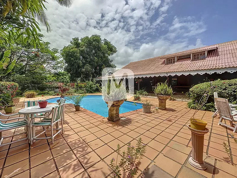À l'extérieur, une terrasse de 59m² menant a un jardin, préservé des regards indiscrets, ceinture la propriété, offrant un cadre de vie des plus agréables. Vous profiterez également d'une grande piscine, accompagnée de son carbet, où se dérouleront vos moments de détente les plus précieux. Sans oublier l'abri voiture pouvant accueillir deux véhicules en toute sécurité.