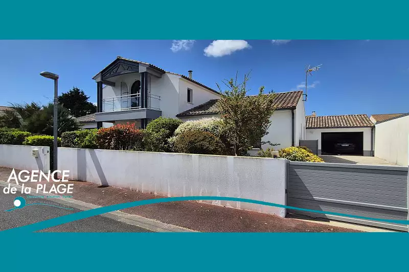 Mdt D4592: Pavillon de 2007 situé dans le centre ville de SAINT JEAN DE MONTS offrant de très beaux volumes (233m²) et de belles prestations. Au rez-de-chaussée : Entrée, vaste pièce de vie (séjour-salon-salle à manger), cuisine ouverte aménagée et équipée, arrière-cuisine, véranda, 3 chambres, 2 wc, salle de bains avec baignoire et douche. A l'étage : Mezzanine, suite parentale (chambre avec sde+wc, dressing et balcon). Terrasses. Garage avec faux grenier. Préau, dépendance. Terrain paysagé et équipé d'arrosage automatique sur puits. État impeccable ! (4.50 % honoraires TTC à la charge de l'acquéreur.)