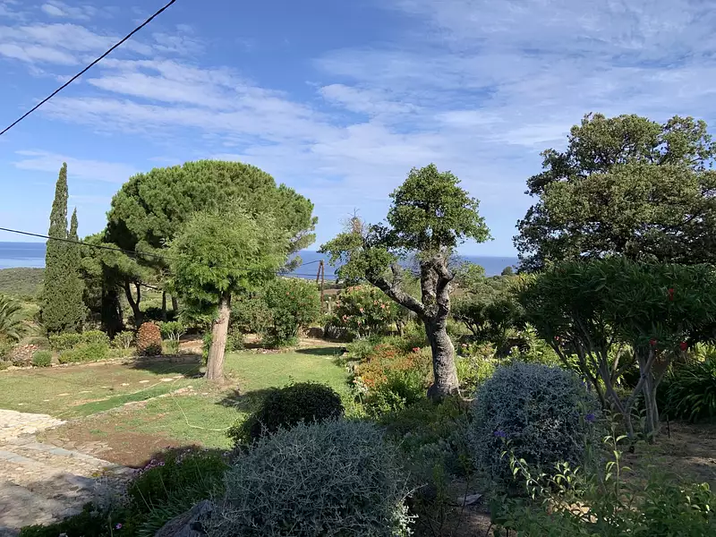 Cette propriete aux allures de jardin d'Eden complantee d'agrumes et d'essences mediterraneennes offre une vue dominante sur la mer allant de la presqu'ile de la Revellata a l'ilot de Spano, tout en etant qu'a quelques kilometres des plages de sable fin. Sur cette propriete ont ete edifiees une habitation principale ( 165 m2 ) comprenant trois chambres, une dependance avec deux chambres ainsi qu'une petite batisse sur deux niveaux en pierre beaucoup plus ancienne. L'ensemble des habitations sont a renover. Ce lieu extremement calme sans voisinage direct donne le sentiment d'etre arrive la ou le temps s'est arrete. Les vieux murs en pierres seches edifies laborieusement ont resiste aux outrages du temps, les sources semblent couler la depuis une eternite. Cette propriete attend ceux qui lui donneront une seconde jeunesse. L'environnement est sauvage, l'atmosphere est apaisante.Afficher plus