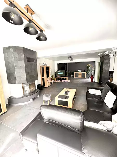 vaste pièce de vie de 75 m² avec cheminée