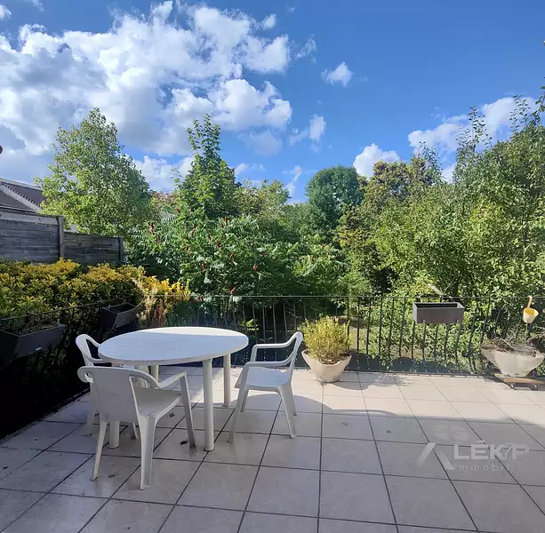 Belle Terrasse dinatoire de plain-pied avec la cuisine dinatoire de 25m² et la pièce de vie lumineuse et bien exposée.
