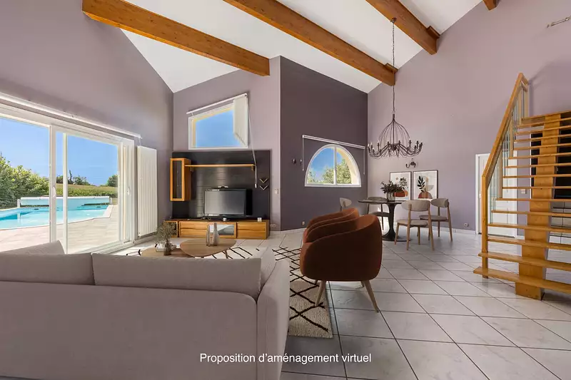 Située chemin de l'Étang, dans un cadre verdoyant et agréable, sans vis-à-vis et avec une vue dégagée, cette maison d'architecte édifiée en 2000 offre de beaux volumes et des prestations de qualité.