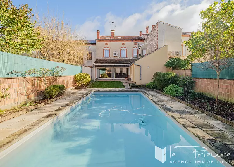 Albi - Belle maison familiale au caractère unique, proche université et commerces. Située dans un quartier calme et recherché d'Albi, à proximité de l'université et de toutes les commodités, cette authentique maison albigeoise d'une surface habitable d'environ 238 m² (288 m² utiles) séduit par son caractère atypique, ses volumes généreux et son agencement pensé pour la vie de famille. Entièrement aménagée par un architecte dans les années 1970, elle offre aujourd'hui un cadre de vie chaleureux, lumineux et original, à seulement quelques minutes du centre-ville. Le rez-de-chaussée s'ouvre sur une spacieuse pièce à vivre baignée de lumière, dotée de larges baies vitrées, d'une cheminée à insert et de multiples espaces à vivre : salon, salle à manger, coin lecture, bibliothèque et vestibule. La cuisine aménagée et équipée bénéficie d'un accès direct au jardin. Des toilettes complètent ce niveau. L'exposition traversante garantit une belle luminosité tout au long de la journée. Le 1er étage, au charme singulier avec ses formes douces et ses dégagements, accueille une suite parentale climatisée avec dressing et salle de bains privative, deux autres chambres confortables avec rangements, un petit bureau, une salle d'eau supplémentaire et des toilettes indépendantes. Le 2e étage sous combles propose deux chambres supplémentaires et un grand espace modulable, idéal pour une salle de jeux ou un coin détente. De nombreux rangements complètent ce niveau. A l'extérieur, le jardin clos offre un espace de détente avec piscine (matériel récent), petite dépendance avec douche, et terrasse ombragée. Un grand garage avec belle hauteur sous plafond et portail sectionnel électrique, ainsi qu'une cave, ajoutent confort et fonctionnalité. Parmi les prestations : double vitrage, chaudière gaz de ville récente, climatisation dans la suite parentale. Quelques travaux de rafraîchissement permettront de révéler tout le potentiel de cette maison au caractère affirmé, idéale pour une famille en quête d'espace, de confort et de charme. A voir sans tarder ! contactez-nous pour organiser une visite.