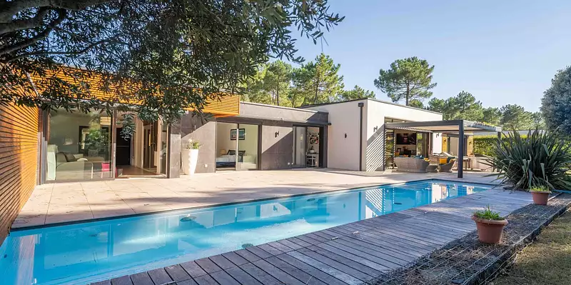 Venez visiter cette somptueuse villa dans une résidence fermée et sous télésurveillance. Vous serez entouré de pins, vous serez séduits à coup sûr de l'environnement.