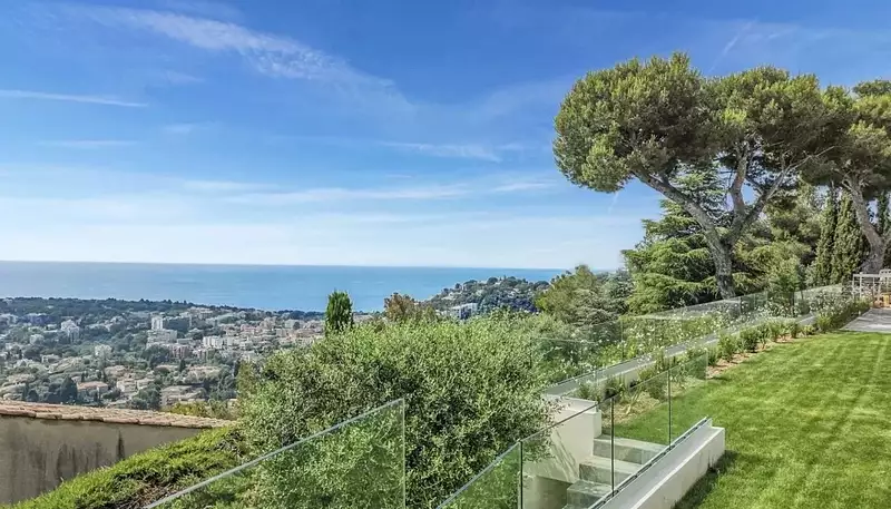 Elle offre une vue mer panoramique exceptionnelle, allant du Cap Martin jusqu’à Menton, et bénéficie d’un ensoleillement maximal tout au long de la journée.