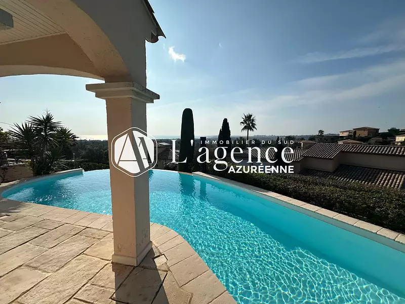 Située à Villeneuve-Loubet, dans un domaine sécurisée de 18 villas, à proximité du parc de Vaugrenier et de la plage, Superbe Villa individuelle d'environ 238 m2 avec piscine offrant une vue panoramique mer. Dans un environnement calme, ce produit rare et recherché vous séduira par son emplacement. Exposition dominante et Plein Sud. Elle se compose d'une magnifique pièce de vie de 62 m2 avec une cuisine américaine entièrement équipée, une arrière cuisine / cellier. Celles-ci ouvrant sur une vaste terrasse. 3 grandes chambres en suites dont une avec dressing. Une 4eme chambre ou bureau. Vous trouverez également plusieurs espaces jardins et terrasses tout autour de la villa. Des toilettes indépendants ainsi qu'un espace détente avec sauna et une magnifique cave à vin de 12 m2 donnant sur un spacieux salon. Ce bien possède également un garage fermé et de nombreuses places de stationnements Située à15 min de l'Aeroport de Nice et 20 min de Cannes, proximité de la plage et de toutes les commodités. Les informations sur les risques auxquels ce bien est exposé sont disponibles sur le site Géorisques : https://www.georisques.gouv.fr CLASSE ENERGIE C Charges mensuelles : 370 € (charges domaine et consommation eau froide)