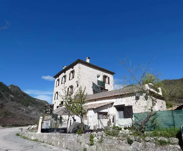 Beaucoup de cachet pour cette bâtisse en pierres d'environ 240m2, composée actuellement de 5 appartements sur un terrain d'environ 1000m2 et avec accès à terrain en bordure de rivière de 4500m2. Située à 45 minutes de l'aéroport de Nice, et à 45 minutes des pistes de ski, cette propriété dispose d'un emplacement idéal pour une activité de chambres d'hôtes, ou d'hôtel, restaurant. Accès facile avec stationnement possible pour une dizaine de véhicules, jardin clôturé et grande terrasse avec barbecue.