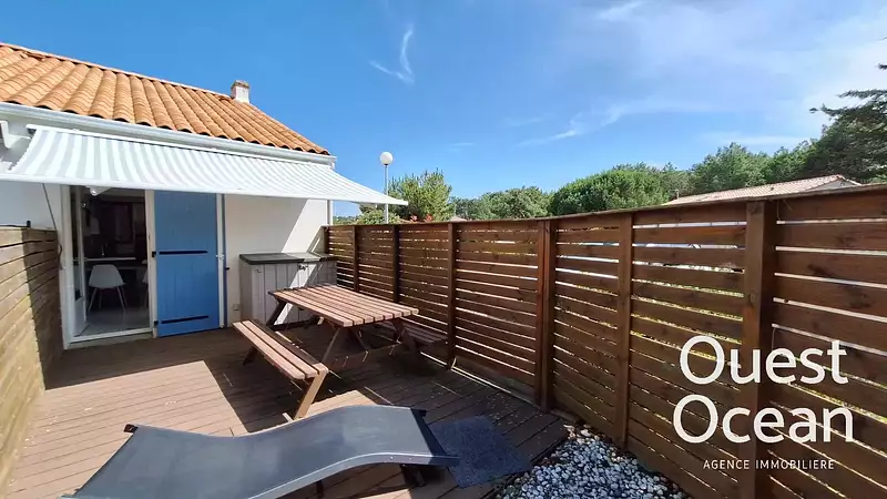 Votre agence Ouest Océan ,vous accueille téléphoniquement du lundi au vendredi ,de 8h30 à 18h.Nous vous proposons de visiter cette maison en copropriété proximité de la plage et la forêt. Composée d'une pièce de vie avec coin cuisine aménagée et équipée , une salle d'eau avec douche et wc. A l'étage, une mezzanine pour couchage. A l'extérieur, une terrasse en bois et son store banne et une place de stationnement. Copropriété de 65 lots gérée par notre service syndic. Les informations sur les risques auxquels le bien est exposé sont disponibles sur le site Géorisques : www.georisques.gouv.fr