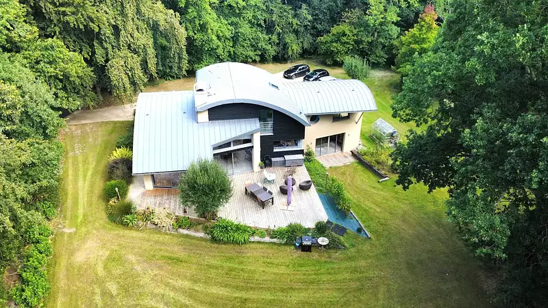 Nichée dans un écrin de verdure au cœur de la très prisée station balnéaire de Dinard, cette élégante maison d’architecte de 2009 conjugue harmonieusement volumes contemporains, confort haut de gamme et qualité de vie proche du bord de mer. D’une surface généreuse de 240 m2, cette propriété vous accueille par une vaste pièce de vie baignée de lumière de 70 m2, combinant salon, salle à manger et cuisine ouverte, avec une exposition plein sud et de larges baies vitrées donnant sur la nature environnante. Très bien lassé en B (DPE), grâce, notamment, à son système de chauffage par Géothermie. La maison comprend 5 chambres dont une en rez-de-chaussée, 3 salles d’eau, 3 WC, une pièce dédiée à la balnéo et hammam pour vos moments de détente, ainsi qu’un double garage. Édifiée sur un terrain arboré de 6 500 m2, sans vis-à-vis, cette propriété offre une intimité rare, tout en restant à proximité immédiate des commodités et des attraits de la ville. À quelques minutes des plages emblématiques de l’Écluse, du Prieuré ou de Saint-Énogat avec accès rapide au centre-ville animé de Dinard, avec son marché, ses restaurants réputés et ses commerces de qualité Nombreuses activités culturelles à proximité : festivals, galeries, golf, promenades côtières et événements tout au long de l’année. Environnement naturel exceptionnel dans une zone résidentielle recherchée. Prix : 1.123.000 € FAI (frais d'agence inclus) Une maison rare, à découvrir sans tarder pour qui recherche le calme, le design et l’élégance non loin de la mer.