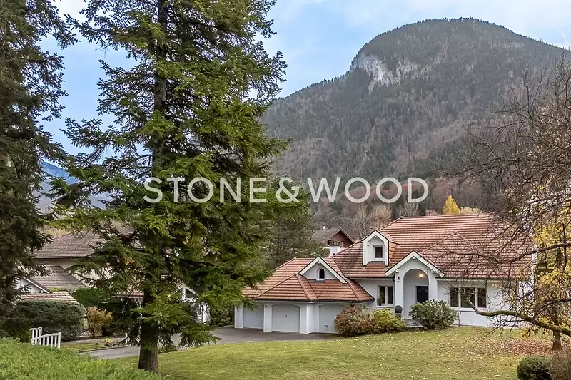 Dans un environnement naturel préservé, les montagnes en toile de fond, cette propriété d'env. 200 m2 habitables se dévoile au coeur d'une parcelle plane de 2700 m2 superbement arborée, avec piscine et charmante maison d'invités de 40 m2. Inspirée des demeures canadiennes, elle offre un cadre chaleureux et apaisant, un véritable havre de tranquillité.