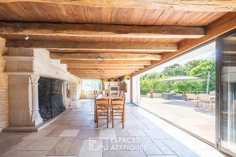 A Is-sur-Tille, cet ensemble immobilier rare conjugue patrimoine et modernité dans un cadre verdoyant. Édifié sur un terrain de 2 700 m² bordé par un bief, il se compose d'une demeure du XIXe siècle d'environ 240 m² entièrement rénovée et d'une dépendance du XVIIe siècle de plus de 300 m², avec piscine chauffée et sécurisée, terrasses et jardin paysager. L'ensemble séduit par son cachet et son fort potentiel d'aménagement. La maison principale dévoile une entrée desservant, d'un côté, un salon séjour lumineux et de l'autre une cuisine contemporaine ouverte sur la salle à manger. Ce niveau comprend également un vestiaire et des toilettes. Le premier étage possède deux suites spacieuses d'environ 30 et 40 m², chacune dotée d'une chambre, d'un dressing, d'une salle de bain et de toilettes privatives. Le deuxième étage propose trois chambres supplémentaires, dont une avec salle d'eau attenante, complétées par une salle de bain et des WC indépendants. Les volumes généreux, les matériaux nobles et la lumière naturelle confèrent à cet intérieur confort et élégance. La dépendance, ancienne bergerie partiellement rénovée, développe déjà plus de 150 m² habitables et chauffés. Elle comprend notamment une salle de jeux de 50 m² et une vaste pièce de réception de 70 m² ouverte sur une terrasse et la piscine. Ses surfaces libres laissent envisager de multiples projets : gîte, espace professionnel ou atelier d'artiste. L'ensemble bénéficie de la proximité immédiate des commerces, écoles, services et de la gare d'Is-sur-Tille. Un bien atypique et singulier où le charme de l'ancien rencontre les possibilités d'un projet de vie sur mesure. Montant estimé des dépenses annuelles d'énergie pour un usage standard : entre 2 880 EUR et 3 970 EUR par an. Prix moyens des énergies indexés sur l'année 2021 (abonnements compris) Consommation énergie primaire : 194 kWh/m²/an. Consommation énergie finale : 135 kWh/m²/an Les informations sur les risques auxquels ce bien est exposé sont disponibles sur le site https://errial.georisques.gouv.fr/#/ pour les zones concernées. Coline RODIER, 06 79 83 14 07. Agent commercial (EI), RSAC 949 150 700 - DIJON (5.26 % honoraires TTC à la charge de l'acquéreur.) Coline RODIER (EI) Agent Commercial - Numéro RSAC : - DIJON.