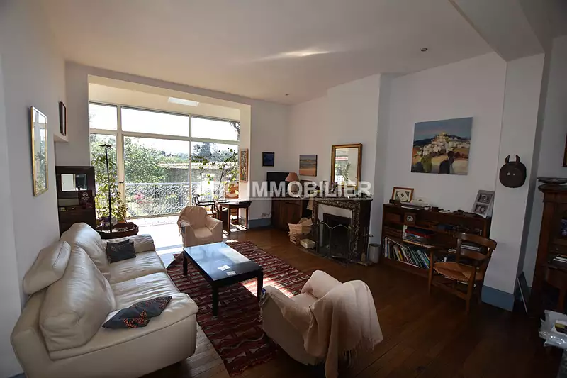 Secteur Baudin, maison des années 1800, en pierre, avec beaucoup de cachet, comprenant un porche fermé, un spacieux salon avec cheminée donnant sur le jardin sans vis à vis, une salle à manger, une cuisine meublée et équipée, cinq chambres, un bureau, une salle de bain, une salle d'eau, trois wc, un dressing, un sous-sol avec cave, chaufferie et pièce annexe, une dépendance et un terrain clos et arboré d'env. 400 m² Quelques travaux de rafraîchissement sont à prévoir !