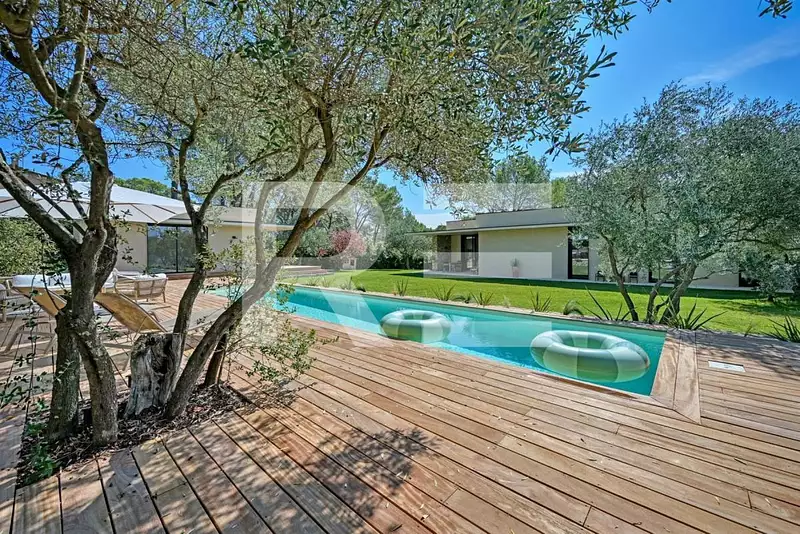 L' AGENCE REGARD VOUS PROPOSE EN EXCLUSIVITÉ CETTE VILLA CONTEMPORAINE AVEC COULOIR DE NAGE ET DÉPENDANCE AU COEUR DE LA GARRIGUE NIMOISE