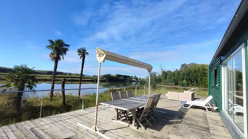 A 30 mns de Bayonne et des plages landaises, sur un site unique et magnifique situé au bord des Gaves Réunis, ensemble immobilier composé d'une maison d'habitation surélevée de 110 m² hab. comprenant à l'étage 3 chambres, une immense terrasse bois face à la rivière, un séjour lumineux, en rez de chaussée un garage plus une grande pièce, ainsi qu'une deuxième maison de plain pied de 130 m² comprenant 4 chambres et une grande pièce de vie. Le tout complété par deux belles dépendances non attenantes. Vous profiterez d'un parc arboré, plat et clos de 3ha21a47ca au total. Ponton privatif pour accéder à la rivière. Zone ski nautique à proximité. TRES RARE. A visiter rapidement