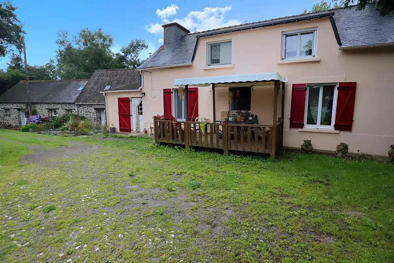 Dans un écrin de verdure, ensemble de bâtiments comprenant la maison principale avec cuisine, arrière cuisine, chambre, bureau, séjour de 68m²et salle de bains. A l'étage: 3 chambres. Une seconde maison avec une pièce de vie de 50m², deux chambres et une salle de bains. A l'étage: un grenier. Un hangar avec mezzanine, un garage. Jardin et prairie. 2 Puits qui alimentent wc etc... L'ensemble sur 9 174m²