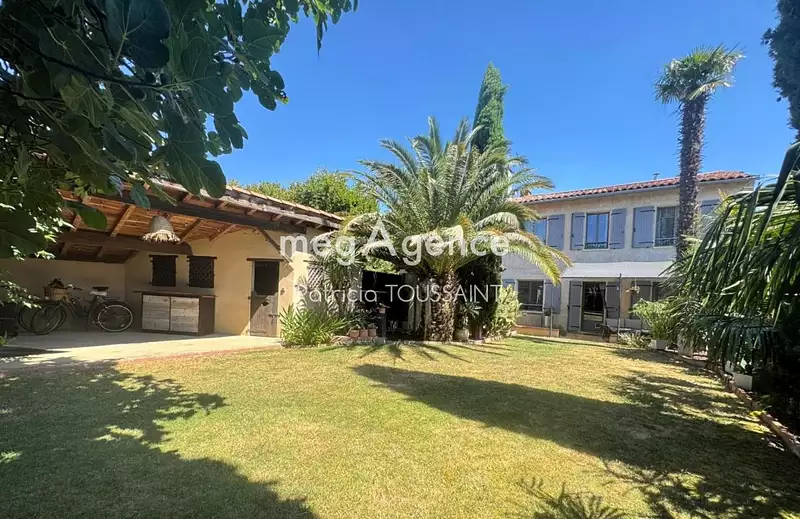 A l'extérieur, un vaste jardin paysagé et arboré, sans vis-à-vis, invite à la sérénité. La piscine ainsi que les différents espaces complète ce tableau, parfait pour recevoir en toute intimité.