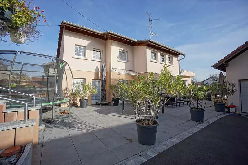 Habsheim 68440. Propriété sur 958m² de terrain comprend une maison principale, une maison secondaire, un double garage, une remise et une piscine chauffée.