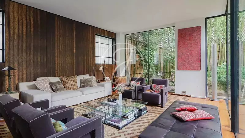 À l’abri des regards, cette maison de 242,17m² loi Carrez rénovée bénéficie d'un superbe jardin paysager de 83m2. Sur quatre niveaux, elle comprend une entrée, une cuisine dînatoire, un salon et une salle à manger donnant sur le jardin, une suite parentale avec salle de bains, deux chambres avec salle d’eau, une salle de cinéma, un hammam, un sauna, un studio de musique, une cave à vin, un atelier de bricolage et un studio indépendant avec cuisine et salle de douche.