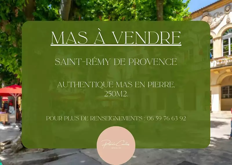 Situé en pleine campagne de Saint-Rémy-de-Provence, à quelques minutes des commerces et services, ce mas en pierre de caractère d'environ 250 m² vous offre un cadre de vie paisible.