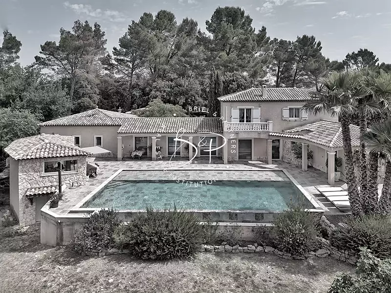 Briel et Partners vous propose : Située sur la commune du Thoronet, venez découvrir cette magnifique propriété d'exception. Dès votre arrivée, vous aurez la sensation d'être seul au monde, dans un cadre préservé, propice à la détente et à la sérénité. Tout a été pensé dans les moindres détails, rien n'a été laissé au hasard. Au rez-de-chaussée, plus de 100 m² d'espace de vie lumineux s'offrent à vous : une entrée accueillante, une cuisine entièrement équipée, une salle à manger conviviale et un vaste séjour ouvert sur une terrasse et une somptueuse piscine. Vous trouverez également une arrière-cuisine, une buanderie, ainsi qu'un accès direct au garage à motos. Côté nuit, une suite parentale de plain-pied avec vue sur la piscine, dressing et salle de bains, une seconde chambre, ainsi qu'une troisième chambre parentale avec accès extérieur et un WC indépendant complètent ce niveau. A l'étage, trois chambres supplémentaires, dont l'une avec balcon offrant une vue imprenable, une seconde salle de bains et des WC viennent parfaire l'espace nuit. La qualité des matériaux et de la construction est irréprochable. L'extérieur est à la hauteur de l'intérieur : un véritable air de vacances vous saisit dès que vous accédez à la terrasse et à sa piscine de 14 x 8,5 mètres. Sa plage de 14 mètres de long et son débordement créent une atmosphère unique. Le pool house climatisé est un véritable lieu de vie en été. Pour compléter l'ensemble : un double garage, un jardin arboré, un espace barbecue avec four à pizza, tout est réuni pour un art de vivre exceptionnel. Vous recherchez un lieu de vie hors du commun ? Contactez-nous pour organiser une visite. Jordane ACCARISIO (EI) Agent Commercial - Numéro RSAC : 882610793 - Draguignan.
