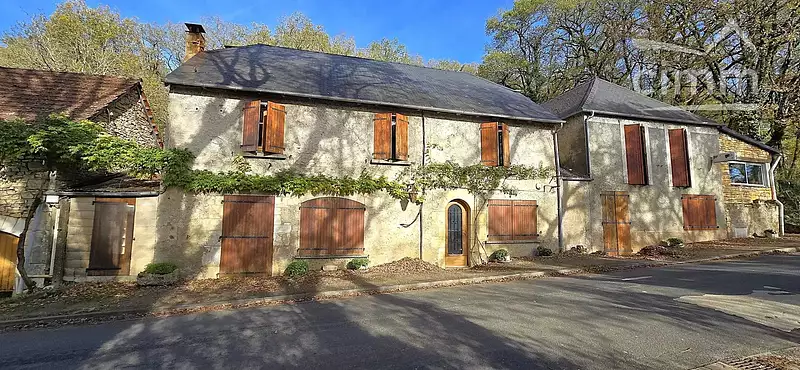 A vendre, ensemble immobilier composé de 2 maisons + nombreuses dépendances, situé à environ 15 min de Terrasson-Lavilledieu et 30 min de Brive-La-Gaillarde