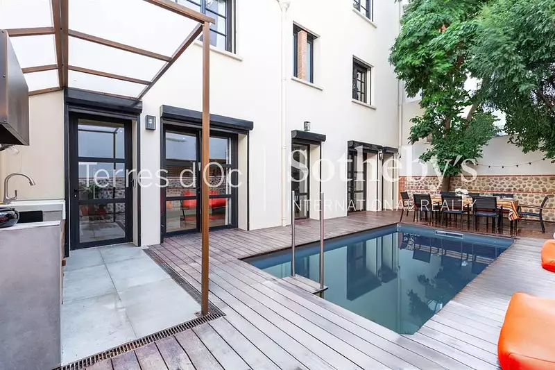 Située au cœur du prestigieux Triangle d’Or de Perpignan, cette maison de ville unique, soigneusement rénovée, conjugue avec élégance le cachet de l’ancien et le confort contemporain. Avec environ 245 m² habitables, un garage privé – rare en centre-ville – et un extérieur intime avec piscine à fond mobile, cette propriété se distingue par son raffinement et son emplacement privilégié.