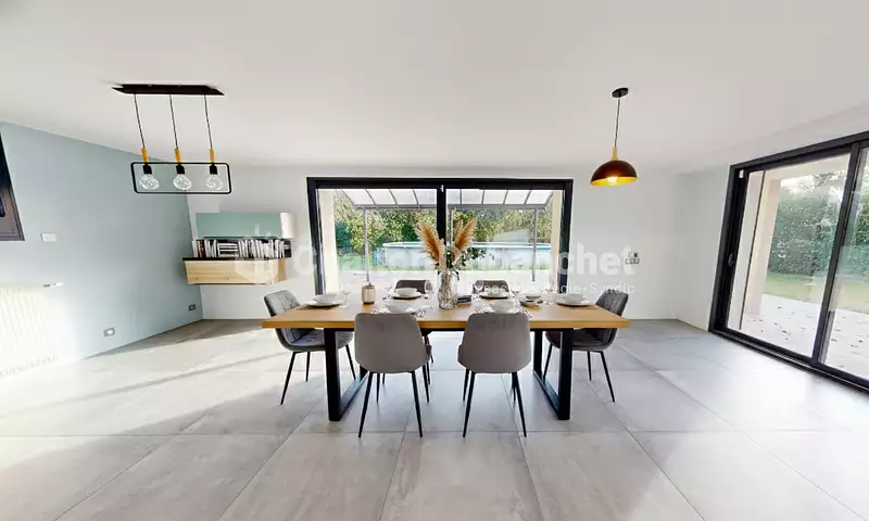Votre agence Chalton Dubanchet vous propose cette très belle maison familiale élevée sur deux niveaux, d'une superficie d'environ 245 m² habitables, située à Riorges. Au rez-de-chaussée, vous découvrirez une belle entrée avec dégagement et placards de rangement, une cuisine équipée ouverte sur un salon-séjour lumineux donnant sur une agréable terrasse, deux chambres dont une avec salle d'eau privative, une buanderie, un WC séparé et une cave. A l'étage, quatre chambres sont proposées, chacune disposant de sa propre salle d'eau. Vous trouverez également une suite parentale avec douche, baignoire, WC et dressing, ainsi qu'un coin salon ouvrant sur un balcon et un second WC séparé. La maison est édifiée sur une parcelle d'environ 1 400 m², offrant un bel espace extérieur avec une piscine hors sol, parfaite pour profiter des beaux jours en famille ou entre amis. Le confort est au rendez-vous grâce aux menuiseries double vitrage, à une excellente isolation des murs et de la toiture, à une pompe à chaleur performante, ainsi qu'à un poêle mixte bois et granulés à haut rendement, garantissant de faibles consommations énergétiques. Idéalement située à Riorges, la maison se trouve à proximité immédiate des écoles, commerces, transports et services du quotidien, tout en offrant un cadre de vie calme, confortable et familial. visite virtuelle disponible. Pour toute question ou pour organiser une visite, contactez votre agent commercial Mikael MASTRONICOLA au 07 43 37 05 56. Mikael MASTRONICOLA (EI) Agent Commercial - Numéro RSAC : - .