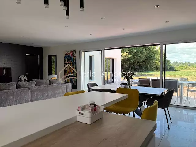 Située dans un cadre paisible et prisé, à proximité de l’océan, des commerces et des espaces de loisirs, venez découvrir cette jolie maison récente à l’architecture contemporaine. Elle se compose d’un sas d’entrée, d’une pièce de vie lumineuse avec cuisine aménagée et équipée, d’une suite parentale (avec dressing, salle d’eau et WC), de trois chambres, d’une seconde salle d’eau, d’un WC indépendant et d’un cellier. Une grande pièce supplémentaire avec salle d’eau vous offre de multiples possibilités : espace de loisirs, salle de cinéma, bureau, suite parentale ou même logement indépendant selon vos envies. Un garage avec faux grenier complète ce bien. À l’extérieur, vous profiterez de deux terrasses et la possibilité d’acquérir une parcelle complémentaire pour agrandir le jardin, dans un environnement verdoyant et harmonieux.