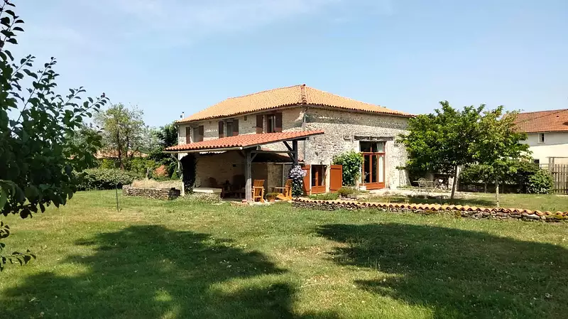 Cette ancienne ferme en pierre est parfaitement située dans la campagne charentaise, avec de beaux jardins matures et des terrasses ombragées pour profiter de la vue. Elle est située sur un terrain privé de 4917 m². Les propriétaires ont soigneusement développé les dépendances séparées pour fournir une maison d'amis et un grand atelier de 150 m². De plus, une autre dépendance qui se trouve dans le parc est à votre disposition pour tout projet de restauration potentiel.