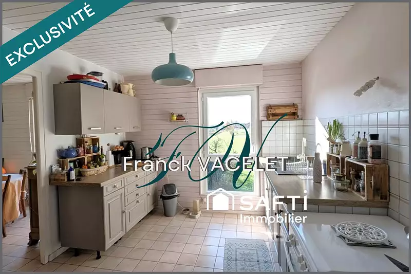 La seconde partie, en ossature bois, surplombe le garage. Elle offre un séjour lumineux de 30 m², une cuisine fonctionnelle, 3 chambres et une salle d’eau.