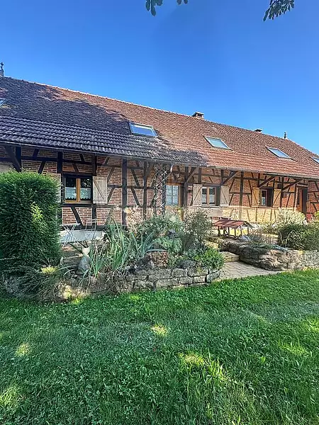 Le second logement de 127 m² se compose au rez de chaussée d'un hall d'entrée, une cuisine équipée, un salon/séjour avec plafond cathédrale et poêle à bois alsacien, une chambre, une salle de bains et toilette avec lave mains. A l'étage une mezzanine avec coin bureau, deux chambres et une salle d'eau avec toilette.