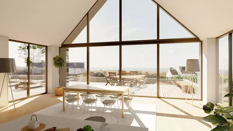 A moins d'un kilomètre de la mer et à proximité des commerces, Villadici vous propose un terrain rare de 3500m², offrant une vue imprenable sur l'océan et une exposition plein Sud-Ouest. Ce terrain est vendu avec un permis de construire valide, référencé sous le PC n° 029 215 20 00019, élaboré par le Cabinet Pierre Yves Le Goaziou de Pont l'Abbé. La future maison, prévue pour une surface de plancher de 247,90 m², bénéficiera d'un assainissement autonome. Les travaux préliminaires sont déjà réalisés : les réseaux d'eau et d'électricité sont en place, la dalle sur vide sanitaire pour la maison principale est construite, et le garage est déjà édifié ( Budget total estimé à un peu plus d'1 Million d'Euros ). Ne manquez pas cette opportunité unique de concrétiser votre projet dans un cadre privilégié, avec une très belle vue sur la mer et un permis de construire en règle. Veuillez noter que les images présentées dans cette annonce sont des projections fournies par le cabinet d'architecture. Plans sur demande. Les informations sur les risques auxquels ce bien est exposé sont disponibles sur le site Géorisques : https://www.georisques.gouv.fr/ Contactez Bertrand CLAQUIN, gérant, au 06.80.87.72.34 (4.63 % honoraires TTC à la charge de l'acquéreur.)Afficher plus
