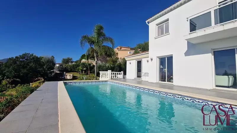 Très belle villa située sur les hauteurs d’Afa à 20 mn d’Ajaccio, bénéficiant d’une vue magnifique sur la vallée. La propriété a beaucoup de charme avec sa grande piscine qui fait le lien entre la maison et le jardin, véritable cocon vert où s’épanouissent arbres fruitiers, essences décoratives et un potager. Face au sud et au golfe que l’on aperçoit de toutes les pièces principales, la lumière et le soleil profitent à toute la maison.