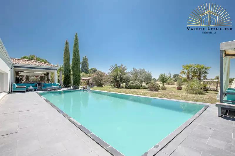En complément, cette maison dispose d’une espace bar extérieur et d’un double garage.