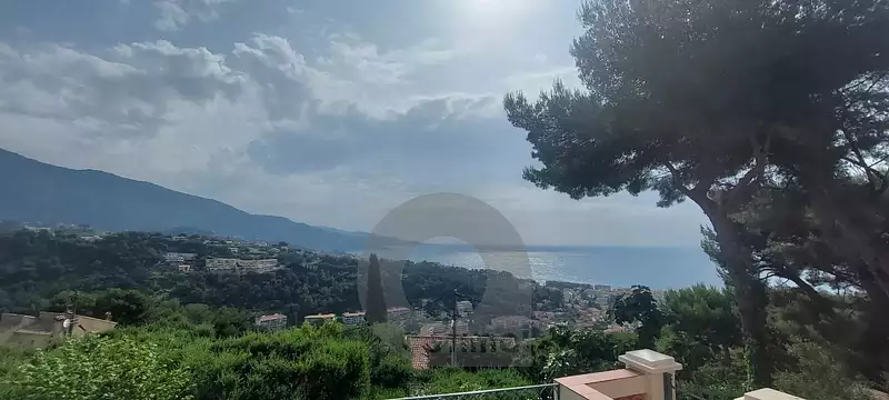 A 5 minutes du centre ville, dans un secteur résidentiel, magnifique villa d'une superficie de 250m², entièrement rénovée avec prestations de qualité, dominant toute la baie de Menton