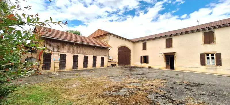 GERS / BASSOUESA 20 minutes de VIC-FEZENSAC et de MIRANDE , ancien corps de ferme composé d'une maison gasconne de 195m² et seconde maison d'habitation plus contemporaine de 65m². Nombreuses dépendances attenantes et non attenantes (ancien chai, garage, préau, volière, hangars, arrière cuisine, salle d'abattage CEE etc...). Des travaux sont à prévoir pour cette habitation qui n'a subit que peu de rénovation. Situé en bout de chemin, sans aucun vis à vis, avec terrain de 1ha 7 environ et possibilités d'acquérir plus de terre jusqu'à 40 hectares en sus.Consommation énergétique : 321 kWhEP/m².an CLASSE E Emission de gaz à effet de serre : 9 kg éqCO2/m².an CLASSE B.prix 199 100€ Emoluments charges acquéreur ,4.57%. soit 9 000€ les prix sont affichés hors frais de rédaction d'acte, hors droits d'enregistrement et de publicité foncière . Les informations sur les risques auxquels ce bien est exposé sont disponibles sur le site Géorisques : www. georisques. gouv. frCoordonnées négociateur : Béatrice VILON, Mobile : 06 14 02 46 79, Email :