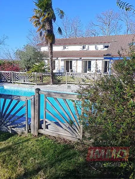 L'Agence Immo en Ligne, au tarif fixe de 4 990 €, quelle que soit la valeur de votre bien, vous présente cette jolie maison d'architecte de 250 m² habitables, dans un parc arboré, posée au cœur d'un environnement naturel exceptionnel dans la campagne gersoise. Implantée sur un terrain plat et arboré de 2 hectares avec piscine et grande terrasse, parfaitement entretenu, cette propriété offre un cadre de vie paisible, spacieux et chaleureux, idéal pour une grande famille ou un projet de résidence secondaire au vert. Elle se compose au rez-de-chaussée d'une cuisine équipée, une salle à manger, un salon, une suite parentale avec salle de bain, deux chambres, une salle de bain. À l'étage, trois chambres, une salle de bain, un bureau, un grand balcon. Le chauffage est assuré par une chaudière fioul à condensation, garantissant confort et efficacité. Pour la détente, un terrain de pétanque entouré de madriers pour un esprit guinguette, une terrasse abritée parfaite pour les repas d'été. Pour la praticité, un cabanon de jardin avec un hangar en renfort. Plus d'informations, contactez L'AGENCE IMMO EN LIGNE au 06 86 84 11 24. Conformément à l'Article L.561.5 du Code Monétaire et Financier, une pièce d'identité sera demandée préalablement à une visite. Toutes nos annonces en vidéo sur notre site LAGENCEIMMOENLIGNE, AGENCE IMMOBILIÈRE A COMMISSIONS RÉDUITES. Honoraires : 1,06 % TTC inclus charge acquéreur (470 000 € hors honoraires)